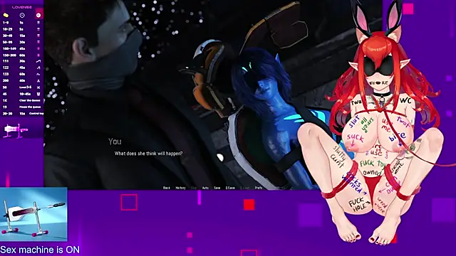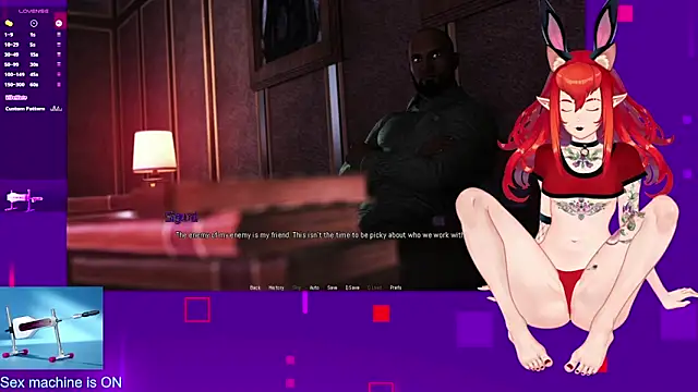 Her show often includes fuck machine. She also does dirty-talk.